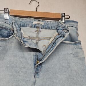 Good American Jeans Straight 10/30 Raw Hem Distressed Light Wash High Rise
