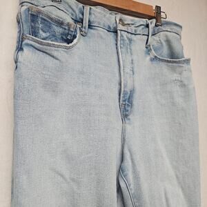 Good American Jeans Straight 10/30 Raw Hem Distressed Light Wash High Rise in excellent condition.