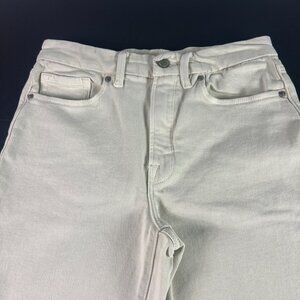 You are purchasing Good American Jeans Women's Measured 29 x 26.5* Classic High Rise Straight Crop Bone White Stretch Denim Tagged 28