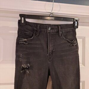 Good American Jeans Womens 4/27 Black Good Curve High Rise Skinny Distressed