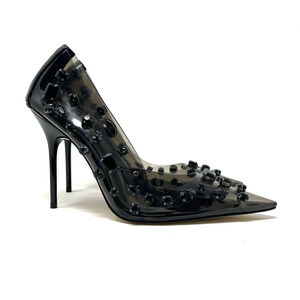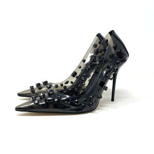 Good American Jeweled Emma Heels Size 7.5 Light Smoke GSH008-X