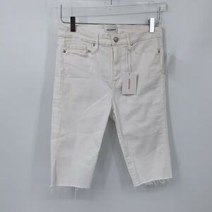 Good American Legs white denim Bermuda shorts jean raw frayed hem new 12 31