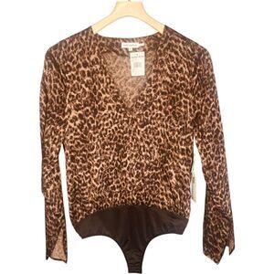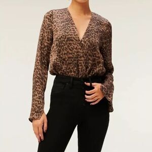 * Good American Leopard Print Flowing Faux Wrap Bodysuit
