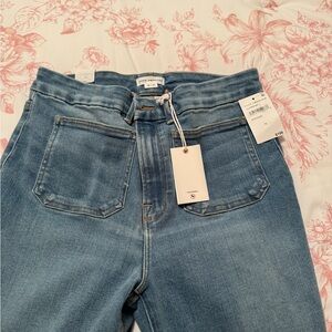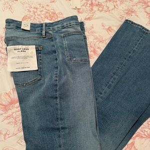 Chic light blue jeans with a wide leg design. Perfect for a stylish look.