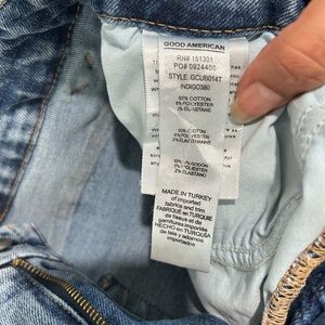 Chic straight leg jeans by Good American. Light blue wash for versatile style. Perfect for casual wear. The "Good American Jeans High Rise Boot Cut" in size 8/29 is a stylish and flattering pair of women's jeans from the popular brand Good American. These jeans feature a high rise waist and a bootcut style, perfect for creating a sleek and on-trend look. With a comfortable and supportive fit, these jeans are great for everyday wear or dressing up for a night out. The brand's commitment to quality and sustainability ensures that these jeans are both fashionable and eco-friendly.