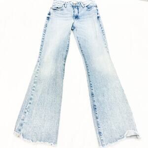 Good American Light Wash Denim Jeans Wide Leg Raw Hem B1GCB062T1253 SIze 0/25