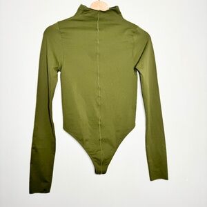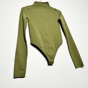 Good American Long Sleeve So Soft Juniper Green Lettuce Edge Mock Bodysuit Sz S