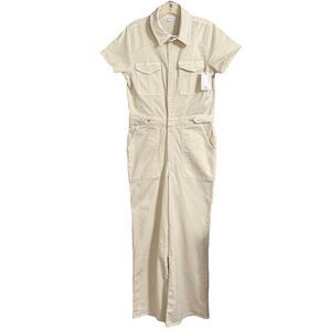 MSRP $179 New with tag! Good American Fit For Success Twill Palazzo Crop Jumpsuit size: medium, color: ecru