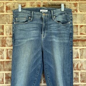 Good American Medium Wash Distressed Raw Hem Skinny Jeans