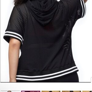 Good American Mesh Perforated Hoodie short sleeve Black Size 1 (S) Loose Fit