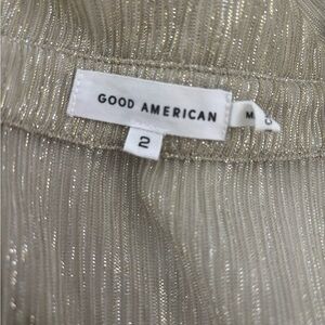 Elegant sheer blouse by Good American in metallic silver. Ideal for a swim cover up