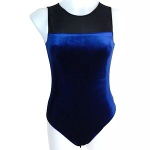 Item: Women's Mixed Velvet Mesh Blue Bodysuit