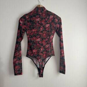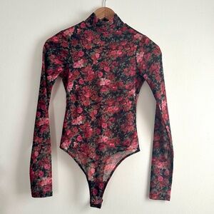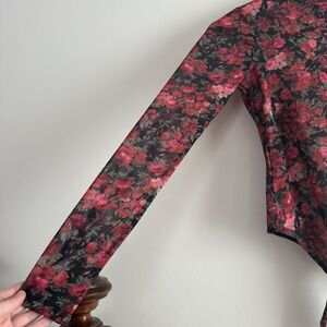 Long sleeve mesh mock neck bodysuit in a moody floral pattern. In excellent condition, no flaws. Size 1 which is Size S US.
