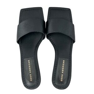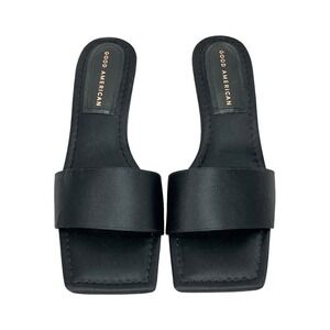 Good American NEW Kickstand Square Toe Slide In Black Sandals