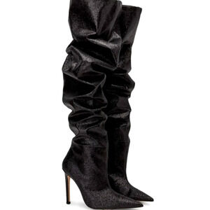 NEW Good American Slouch Over the Knee Black Glitter Boots
