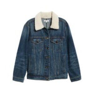 Good American NWOT Sherpa Boyfriend Denim Jacket