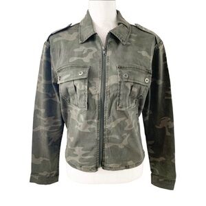 Good American NWT Camo Print Soft Stretch Short Military Jacket Army Green Sz XS