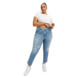 Good American - NWT Good Classic Blue Slight Distressed Straight Leg Jeans Sz 6