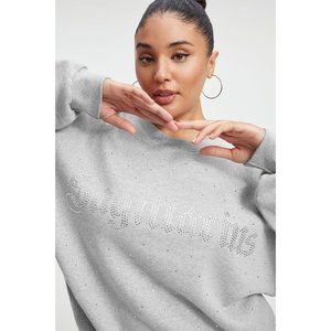 Good American Sagittarius Zodiac Boyfriend Sweatshirt size XS (Good American size 0, see size chart in photos). Our most-loved collection is back, this time around with accent crystal embellishments! Show off your star sign in the super soft Sagittarius Boyfriend Sweatshirt. Extra-long sleeves, oversized fit. Cotton knit, brushed-back, cozy fleece. Strong and durable, but light, lofty and super soft. Grey color. New with tag attached.