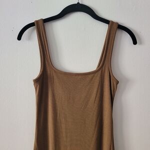 Good American NWT Scoop Neck Fitted Midi Dress Brown Size 0