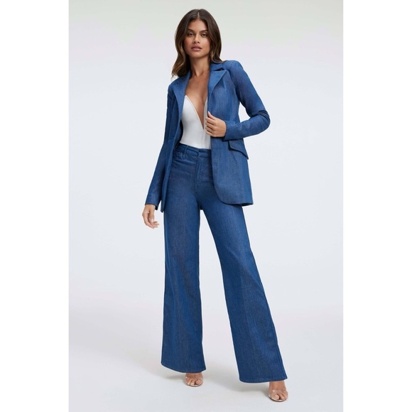 Good American Notch Lapel Chambray Blazer Denim Lined Women’s Sz 1