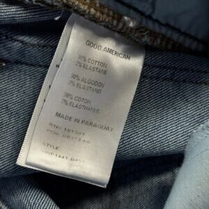 Elevate your denim collection with these stylish Good American Palazzo Jeans! These jeans feature a flattering flare, a cropped length, and a trendy raw hem. The comfortable stretch denim makes them perfect for all-day wear.