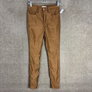 Good American Pants Womens 2 Brown Tobacco Faux Suede Skinny High Rise Stretch