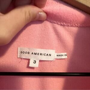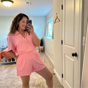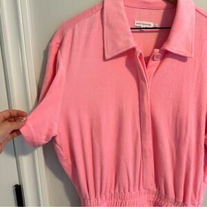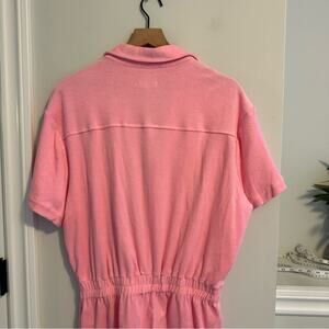 Very cutesy! I adore this super pretty designer Good American bright pink terry cloth cotton short sleeve button front romper/one piece