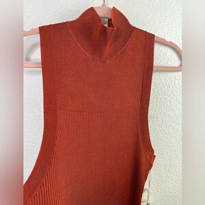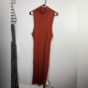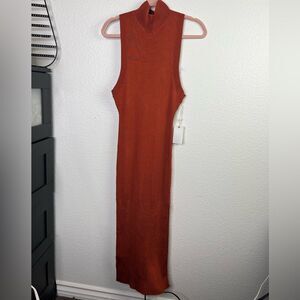Good American Plaited ribbed midi dress in red clay/ copper \