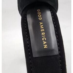 Good American Platform Block Heel Black Suede Ankle Strap Chunky Sandal 10.5 NEW