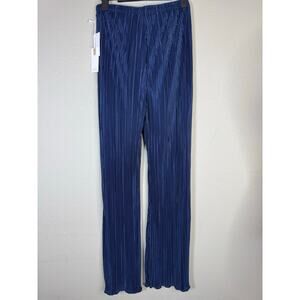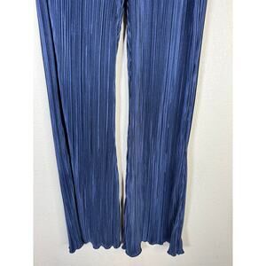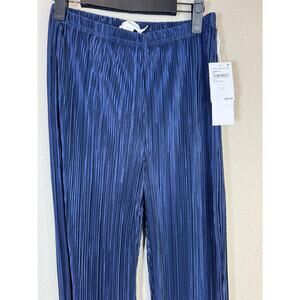 Good American pants, wide leg pleated trousers, metallic pants, dressy lounge pants, size medium, flowy pants, statement pants, holiday party pants, blue shimmer pants, crinkle pleat