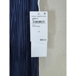 Good American Pleated Wide Leg Pants Blue Rinse Size 1/2 NWT Metallic Crinkle