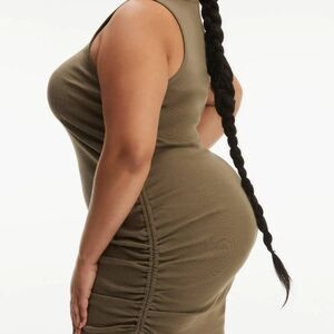 Good American Plus Size 2X (Size 5) Ruched Mini Cotton Dress in Sea Turtle Green: new with tags and from a smoke-free and pet-free home. Ships same or next business day!