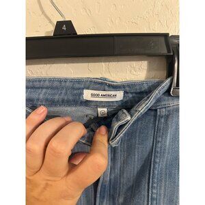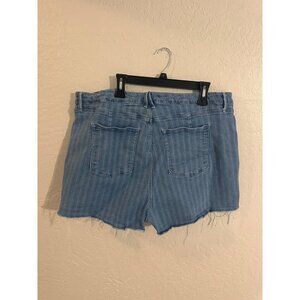 Pocketed super comfy and stretchy plus size striped denim shorts from Good American / organic cotton blend. See pics for more details.