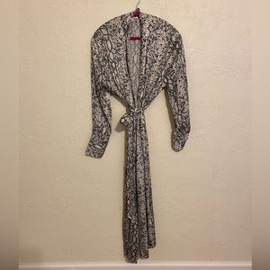 GOOD AMERICAN. Stunning duster/long robe in the perfect python print. Can be worn around the house or for a night out in the town. Tie waist and tapered sleeves. 100% Viscose and 100% fabulous.