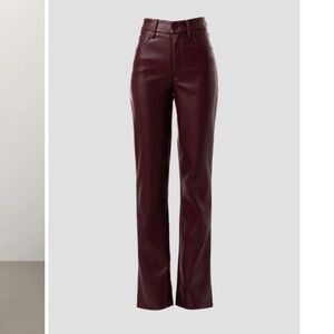 Good American pants, faux leather trousers, maroon pants, dark red pants, fall fashion, high rise pants, curve flattering pants, luxury faux leather, edgy style, modern fashion, date night outfit, preppy luxe, boho glam, vintage-inspired leather look, women’s size 2 pants