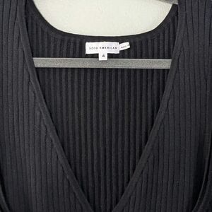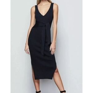 GOOD AMERICAN Rib Knit Tie Waist Midi Dress