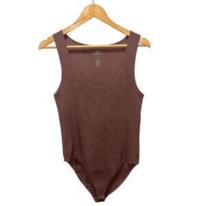Good American Ribbed Bodysuit Size 4 Body Contour Brown Stretch Comfy