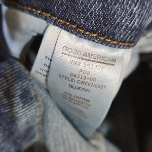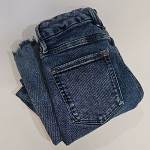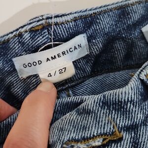 Good American ripped skinny jeans. Holes at knees, raw hem. size 27/4. good condition. medium wash