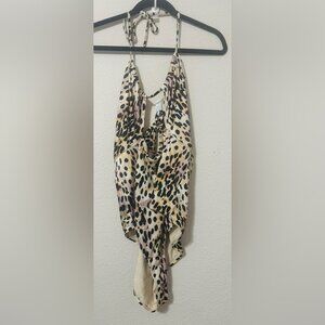 Good American Ruched Halter Rose Cheetah One-Piece Swimsuit Size 8 (M/L) NWT