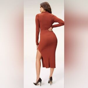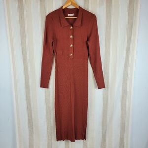 Good American Rust Ribbed Button-Up Maxi Midi Dress Size 5/6 Red