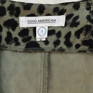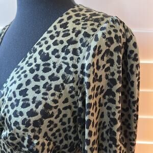 Good American Sage Leopard Wrap Top Balloon Long Sleeve Green Black Size 1 = S