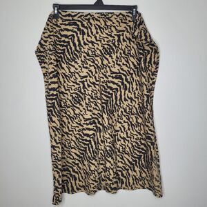 Good American skirt: tan black, zebra animal print, plus size, midi, partial open side