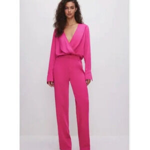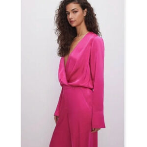 Good American Satin Wrap V-Neck Long Sleeve Blouse Top | Sz 2XL Pink NEW $149