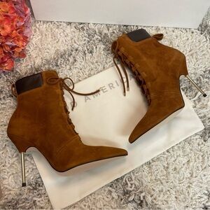 Good American Scandal Booties in Tobacco Brown Suede size 5.5