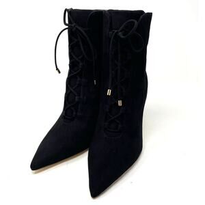 Good American Scandal Lace Up Stilleto Booties Suede Black Size 9.5 GA012K-X