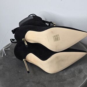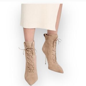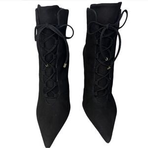 Good American Scandal Lace Up Stilleto Booties Faux Suede Black