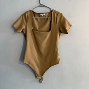 Chic camel bodysuit with sleek design. Ideal for versatile styling.