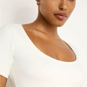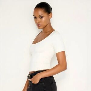 Good American Scuba Scoop Cropped Tee Short Sleeve in White Size Medium