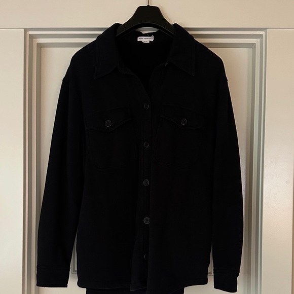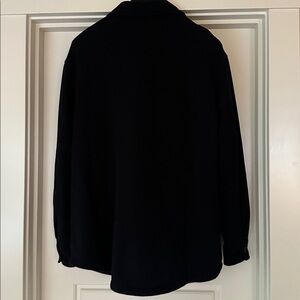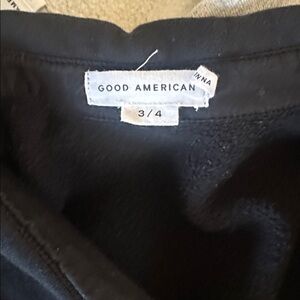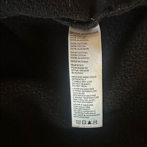 Soft black pullover with crew neckline. Comfortable everyday sweatshirt style. Minimal branding at the collar. Easy-to-wear casual piece.